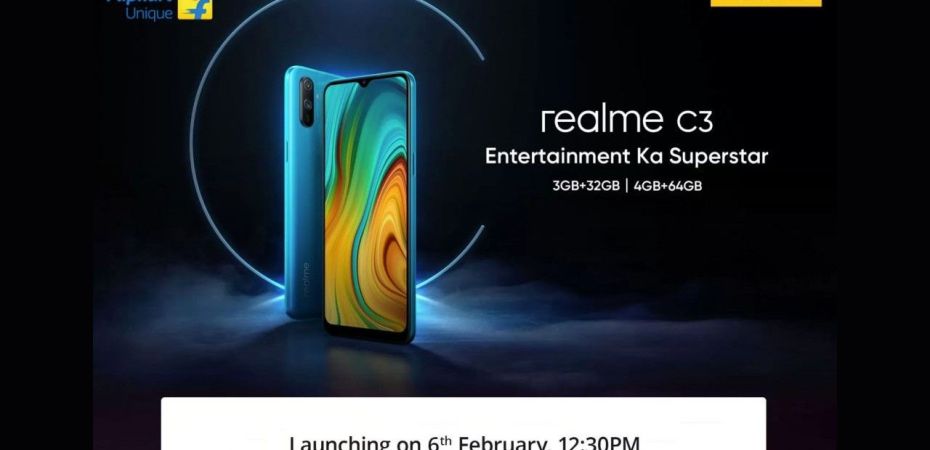 - Realme C3 will launch on February 6 at 12.30 PM in India.