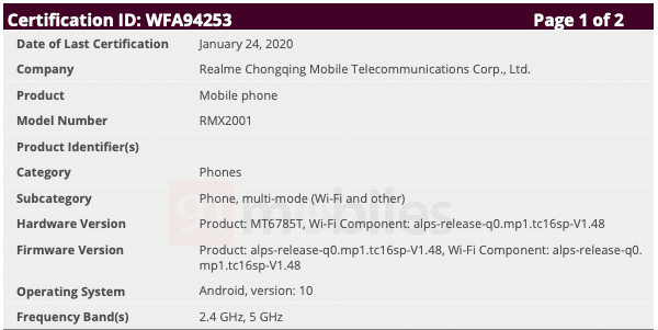 According to the Wi-Fi Alliance listing, the Realme RMX2001 smartphone – which had been previously confirmed as the Realme 6 – will be powered by the MediaTek MT6785T chipset. This chipset’s marketing name is MediaTek Helio G90 – it should be noted that this SoC is different from the Helio G90T that powers the Redmi Note 8 Pro. In fact, Realme 6 might just become the world’s first smartphone with this chipset as no smartphone yet carries the chipset.