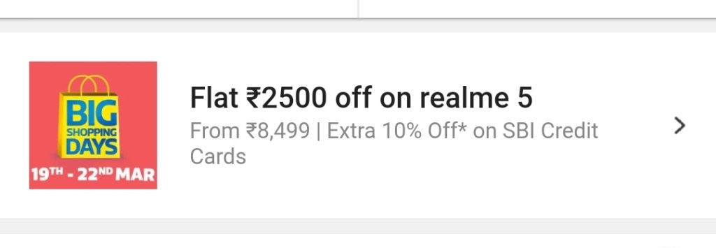 During the Realme Days Sale, the Realme 5 Pro will be available at a starting price of Rs 11,999 for the base 4GB RAM and 64GB storage variant, which otherwise costs Rs 12,999. Similar discount will also be available with the phone’s other RAM and storage variants along with Rs 1,000 additional prepaid offers on Realme and Flipkart. This will bring the handset’s 6GB RAM + 64GB storage variant price in India down to Rs 11,999 from Rs 13,999 (launch price 15,999 )and the top end 8GB RAM + 128GB storage option to Rs 13,999 from Rs 15,999 (launch price 17,999). This will be after Rs 1000 off on prepaid transactions for 6 and 8 GB variants.