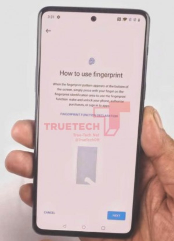 As expected, the phone sports a flat display with a single centered punch hole. Judging by the instructions on the display it will come with a built-in fingerprint reader. This also means the OnePlus Z will employ an OLED panel, likely of 90Hz refresh rate as last year the company committed to using that as a minimum in future products. According to past rumors the diagonal will measure between 6.4 and 6.5-inches.