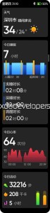 Here’s a look at the Activity panel, which displays weather info and charts the sleep and heart rate data that the watch has collected, plus a list of other functions (e.g. Alarm and Find my phone) as well as the exercise modes.